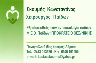 Παιδοχειρούργος - ΠαιδοουρολόγοςΕξειδικευθείς στην Εντατικολογία παίδωνΧειρουργική Κοιλιάς - Θώρακος - Τραχήλου
